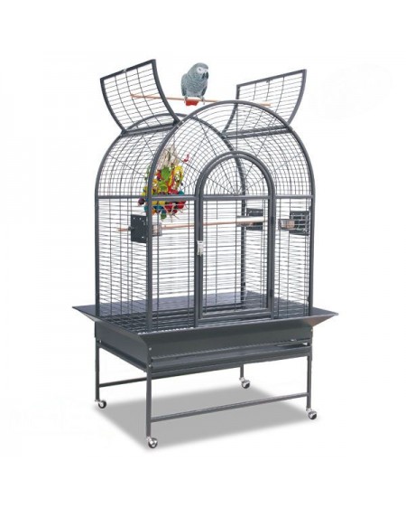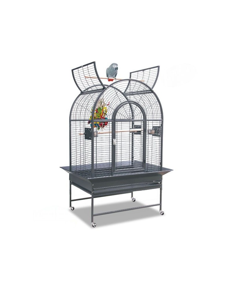 Linee essenziali ma pratiche per questa grande voliera per pappagalli. Caratterizzata da barre orizzontali per facili arrampicate e da un ampia ed elegante porta di accesso. Le generose dimensioni, il tetto versatile e le ciotole in acciaio, rendono la gabbia comoda.