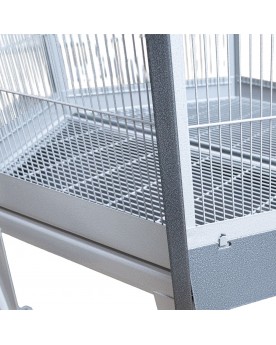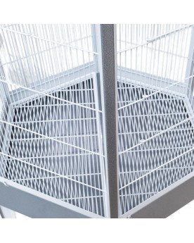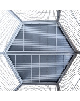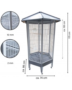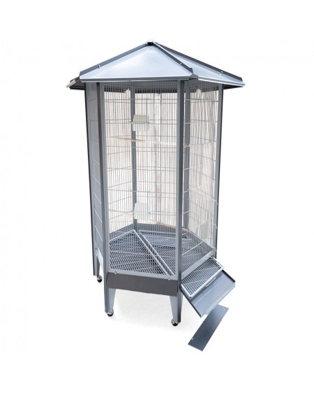 La voliera esagonale Villa Redondo, dal suo elegante aspetto antico/platino, combina un design di alta qualità con una funzionalità ben pensata - ideale per piccoli pappagalli.