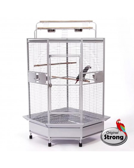 La Villa Erica è una spaziosa gabbia angolare per pappagalli con un divertente piano sulla parte superiore. Grazie al suo design angolare salvaspazio, occupa meno spazio pur offrendo al tuo pappagallo molto spazio abitativo. Le ciotole di alimentazione possono essere riempite dall'esterno tramite un comodo meccanismo girevole e le ciotole extra in acciaio inossidabile sulla parte superiore possono essere facilmente rimosse. Un vassoio estraibile sotto il piano della parte superiore garantisce una maggiore igiene e può essere rimosso per avere più luce all'interno della gabbia.