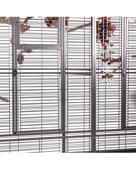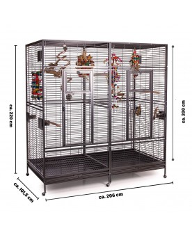 1. Spazio generoso: Con dimensioni di circa 206 x 101,5 x 220 cm, questa gabbia doppia per pappagalli offre un habitat impressionante per il tuo uccello.