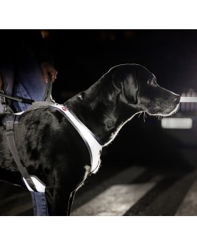 L'imbracatura Belka The Glow è progettata per garantire la massima sicurezza al buio. La sua superficie morbida ma resistente, realizzata in materiale altamente riflettente, riflette quando viene colpita dalla luce e garantisce così una visibilità ottimale a 360° e una maggiore sicurezza durante le passeggiate al buio.