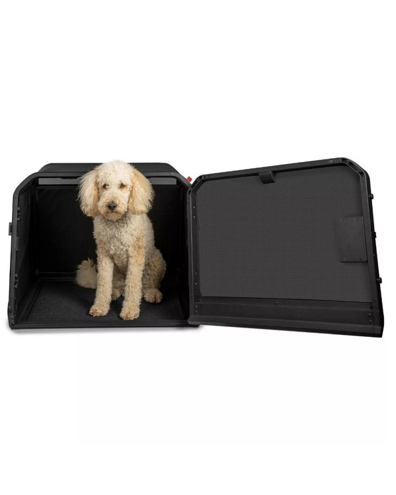 La gabbia da trasporto ideale per cani di taglia compresa tra un pastore tedesco e un dobermann. La gabbia da viaggio Origami Dog ridefinisce il trasporto degli animali domestici. È la prima gabbia pieghevole al mondo che si apre con la semplice pressione di un pulsante. Testata contro gli urti per garantire una protezione ottimale in caso di incidente, è realizzata con tessuti di alta qualità e alluminio resistente. Il design moderno e discreto si adatta a qualsiasi interno dell'auto. Disponibile in quattro misure. Misurate lo spazio tra il sedile posteriore e il portellone per assicurarvi che si adatti perfettamente.