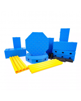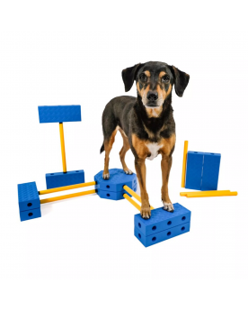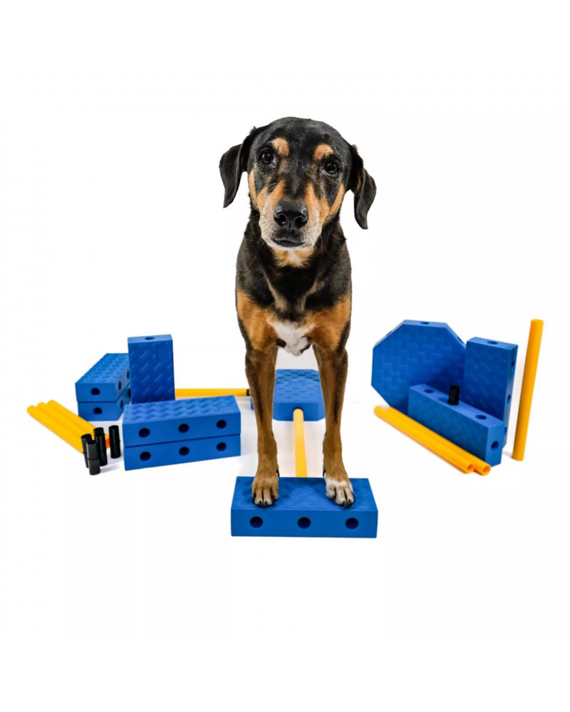 Tutti i componenti sono realizzati con materiali resistenti e durevoli e sono dotati di uno strato superiore in gomma termoplastica antiscivolo. Ciò garantisce che il vostro cane rimanga stabile e sicuro su qualsiasi superficie. I colori giallo e blu ad alto contrasto sono studiati per adattarsi alla visione canina, favorendo una maggiore concentrazione, movimenti più precisi e una maggiore sicurezza durante l'allenamento.